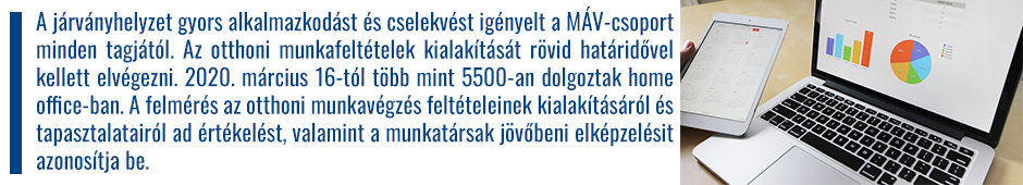 A kialakult járványhelyzet felgyorsította az otthoni munkavégzés széles körű bevezetését a vasúttársaságnál. A távoli munkavégzés minden feltételét és működését nagyon rövid idő alatt kellett megtanulnunk.
