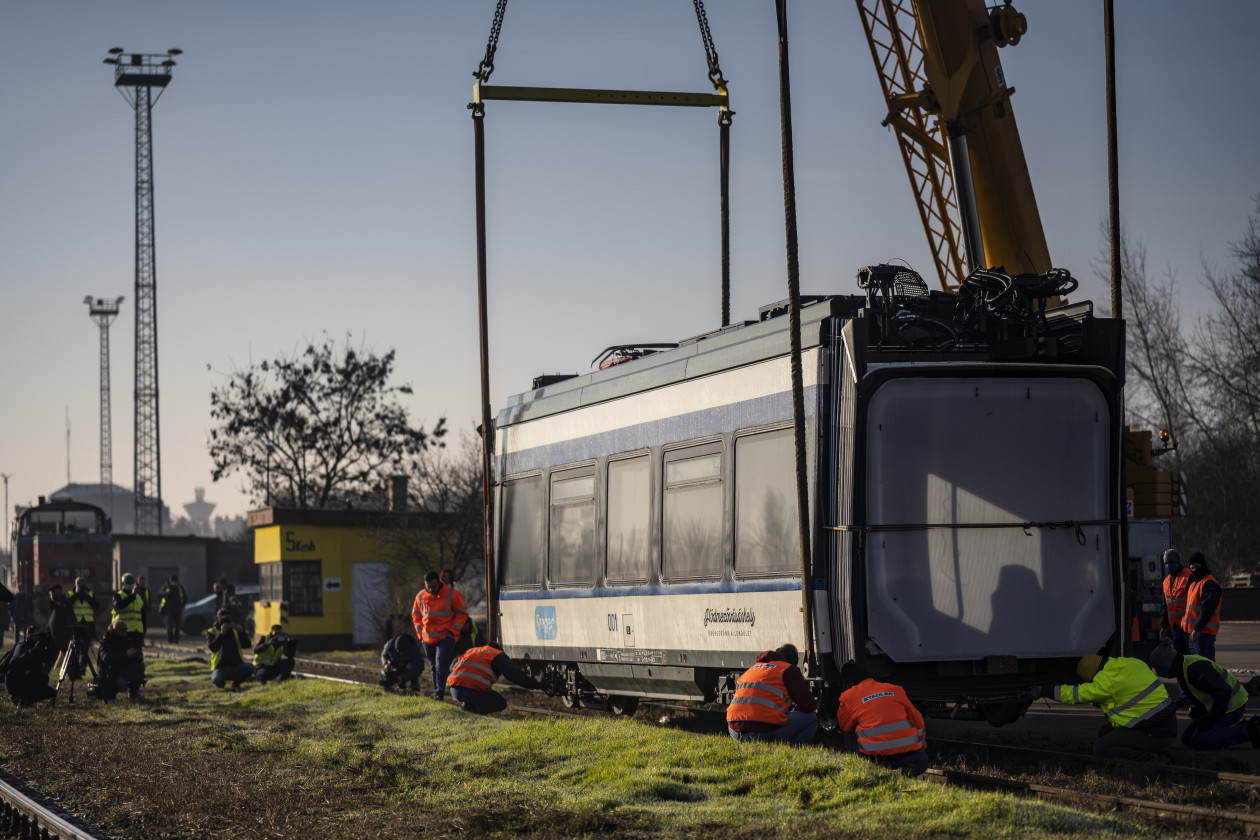 A tram-train szerelvény három különálló, szétszerelt darabját a kamionokról két 60 tonnás daruval emelték le. A szakemberek először a két forgóvázzal rendelkező, önállóan is megállni tudó betétkocsit emelték le, amelyhez egyenként kapcsolták hozzá a szélső kocsikat. Ezt követően a MÁV-START 478-as sorozatú dízelmozdonya ideiglenes állomáshelyére, a szentesi járműbiztosítási telephely korszerű emelőcsarnokába vontatta az első szerelvényt. A következő napokban a Stadler mérnökei elvégzik a jármű üzembehelyezését, amelyet követően megvalósulhat a hatósági szemle, és megkezdődhetnek a szükséges futópróbák és típustesztek.