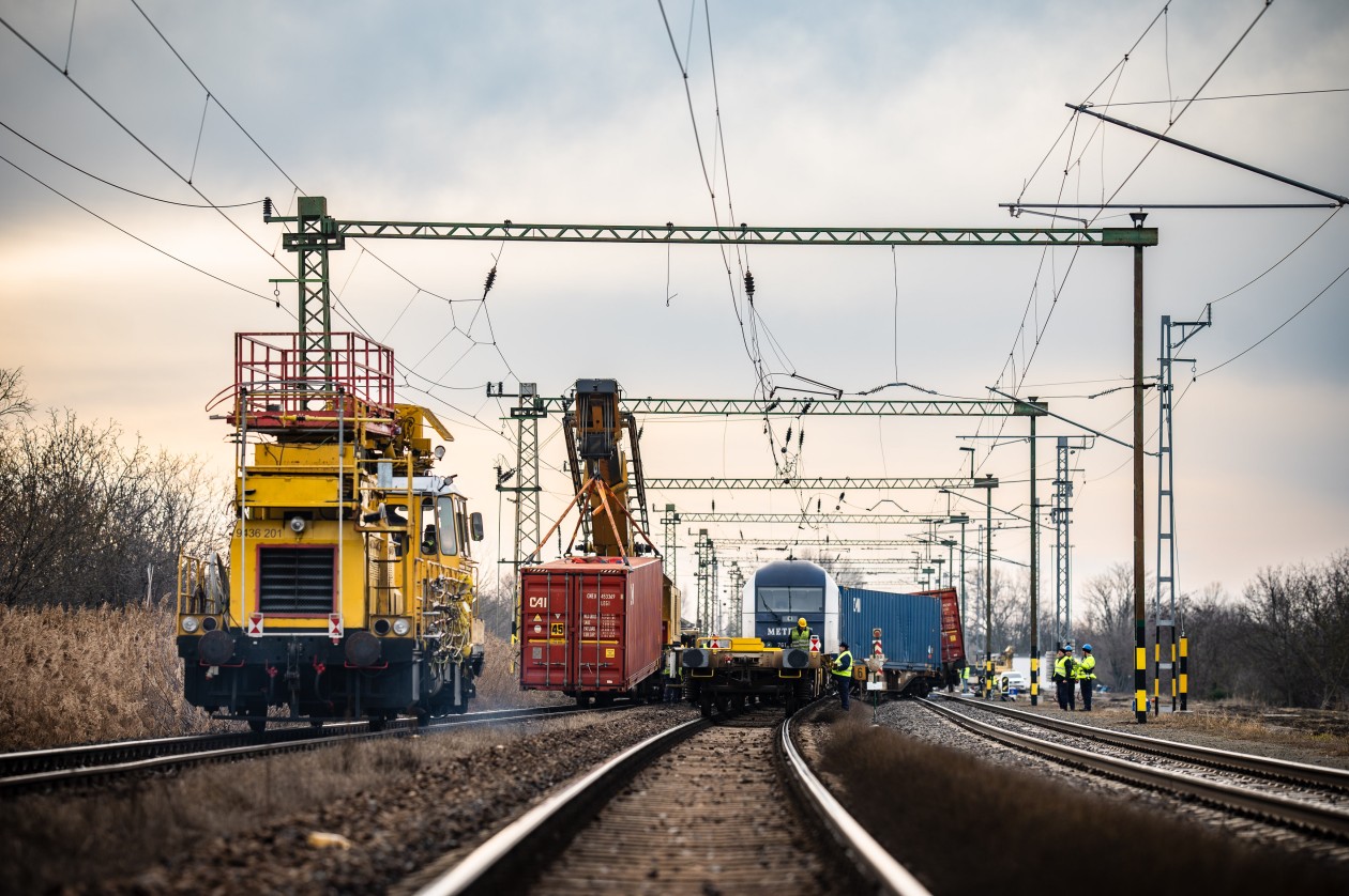 Közel 100 kollégánk összehangolt munkájának köszönhetően megkezdődött a szombat délután kisiklott konténerek daruzása Szegeden, a baleset helyszínénél. A szakemberek elbontották a felsővezetéket, így a speciális kialakítású baleseti daru már hozzáfér a siklott kocsik rakományához, megkezdődött a konténerek áthelyezése. A vasúti pályatest több száz méter hosszban rongálódott, a helyreállítás jelenleg is megfeszített tempóban zajlik. Kollégáink folyamatosan azon dolgoznak, hogy mihamarabb megindulhasson a közlekedés, a jelenlegi információink alapján várhatóan szerda üzemkezdettől korlátozásokkal, de valamennyi Szegedet érintő vonalon megindulhat a vonatforgalom. Az Országos Haváriaközpont intézkedését követően a vasárnap délutáni csúcsforgalomban elegendő busz áll készenlétben utasaink elszállítására, valamint több szegedi helyi járaton is elfogadják a vonatjegyeket.
