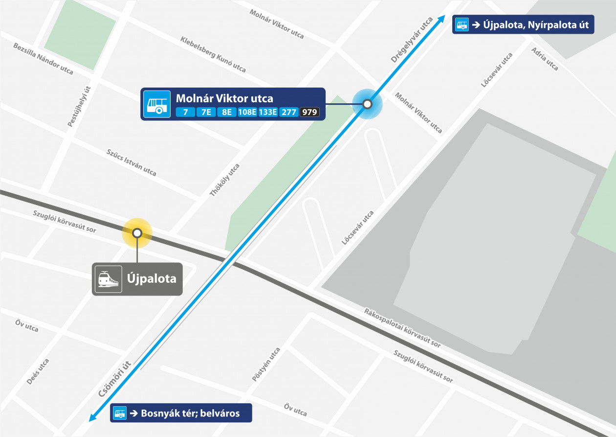 A tervek szerint idén tavasztól a Piliscsaba és Angyalföld között félóránként közlekedő vonatok munkanapokon a balparti körvasúton át tovább közlekednek Rákosig. Kísérleti jelleggel Újpalotán megállóhelyet létesít a vasúttársaság, 350 méterre a 7-es buszcsalád Molnár Viktor utcai megállóhelyétől. Mindkét oldalon egy-egy 85 méter hosszú magasperon épül, utasbeállóval, térvilágítással, valamint hangos utastájékoztató rendszerrel. A peronokhoz rámpa épül, így megvalósul az akadálymentes megközelítés is. Jelenleg zajlik a peronépítés, a felsővezetéket érintő munkákat pedig már be is fejezték.