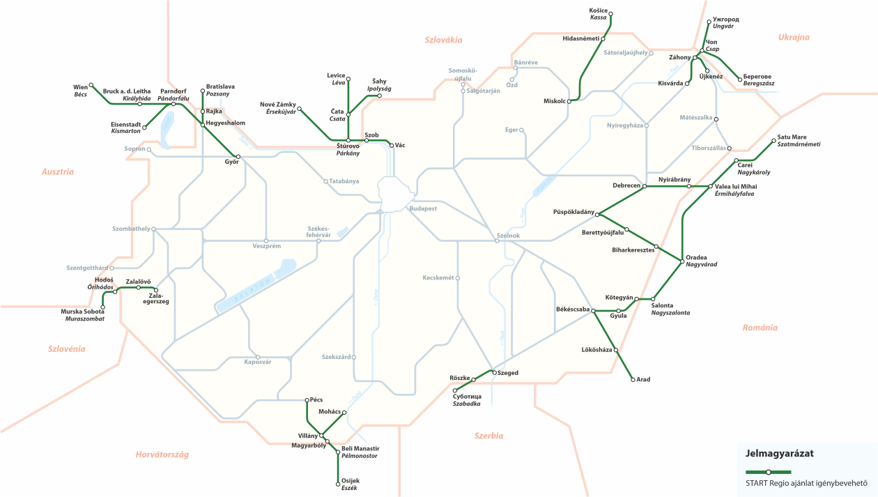 START Regio kedvezménnyel használható vasútvonalak és regionális nemzetközi buszjáratok:
