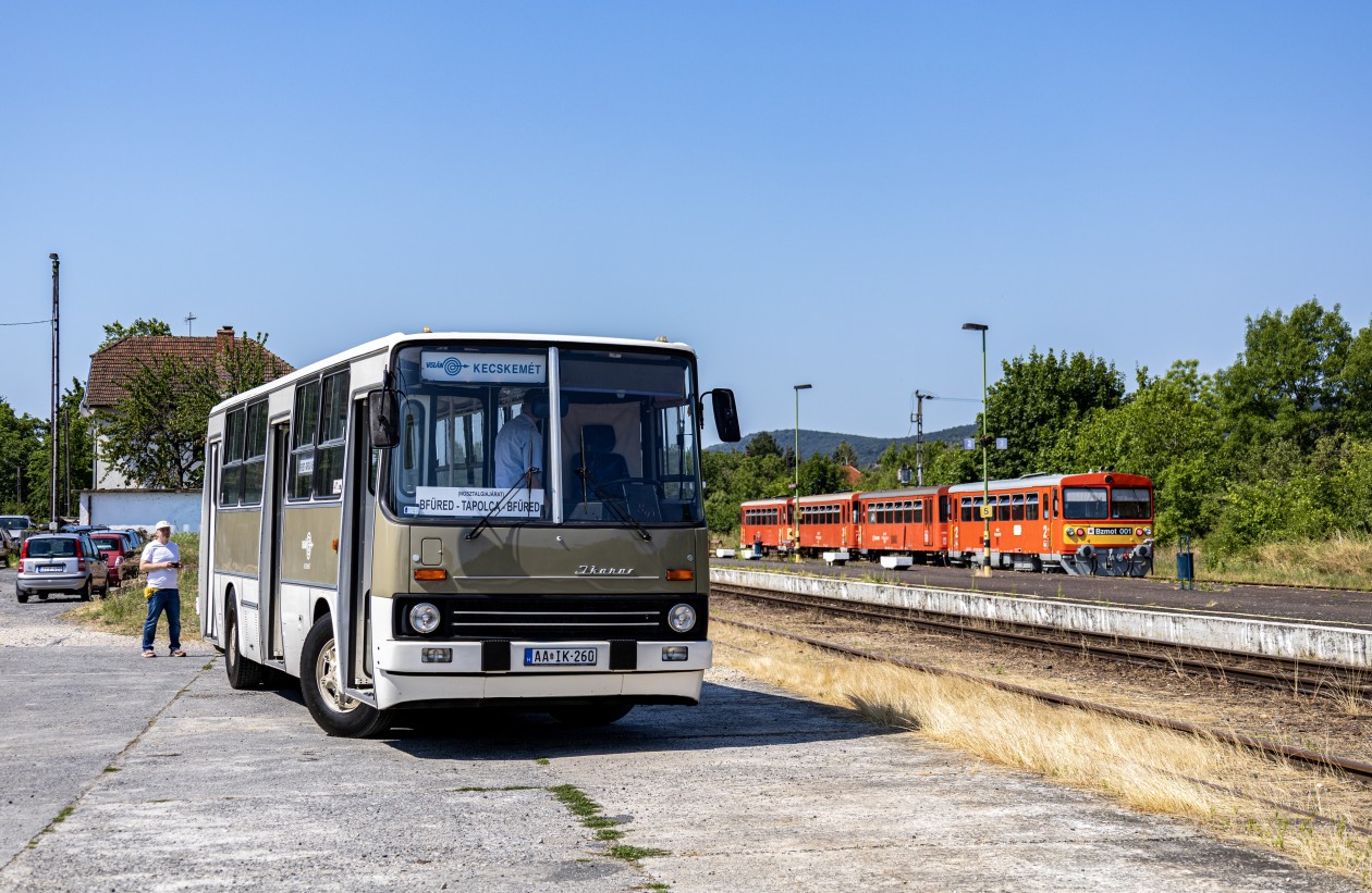 Tapolca átszállási lehetőség a retró Ikarus 266 autóbuszról, illetve autóbuszra |