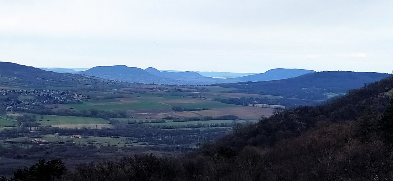 Lesenceistvánd fölött a szőlőhegyen. Sorban a tanú-hegyek. Fotó: Judák Ambrus