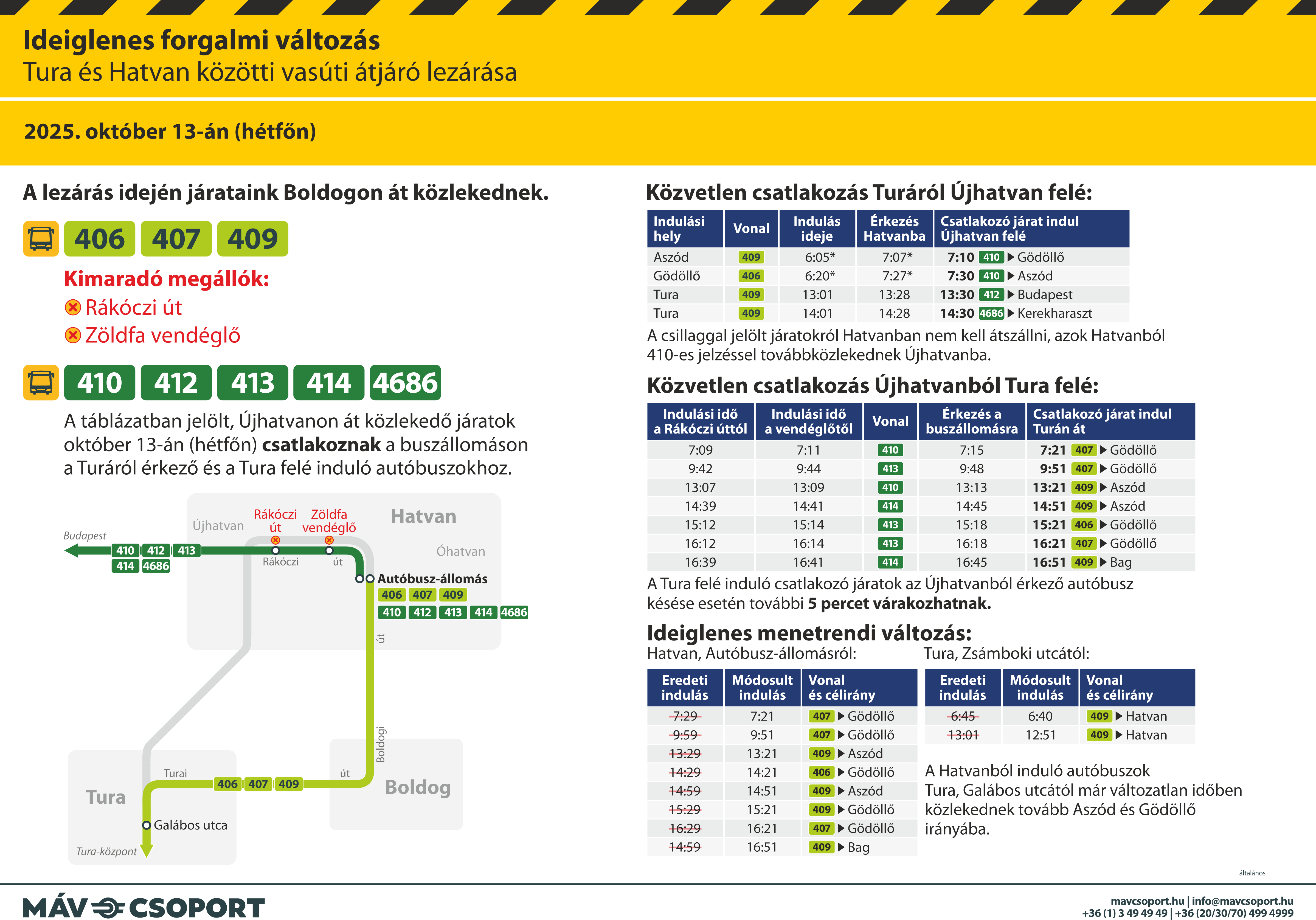 2025. október 13-án (hétfőn) Tura és Hatvan között lezárják a vasúti átjárót, ezért járataink Boldogon át közlekednek.