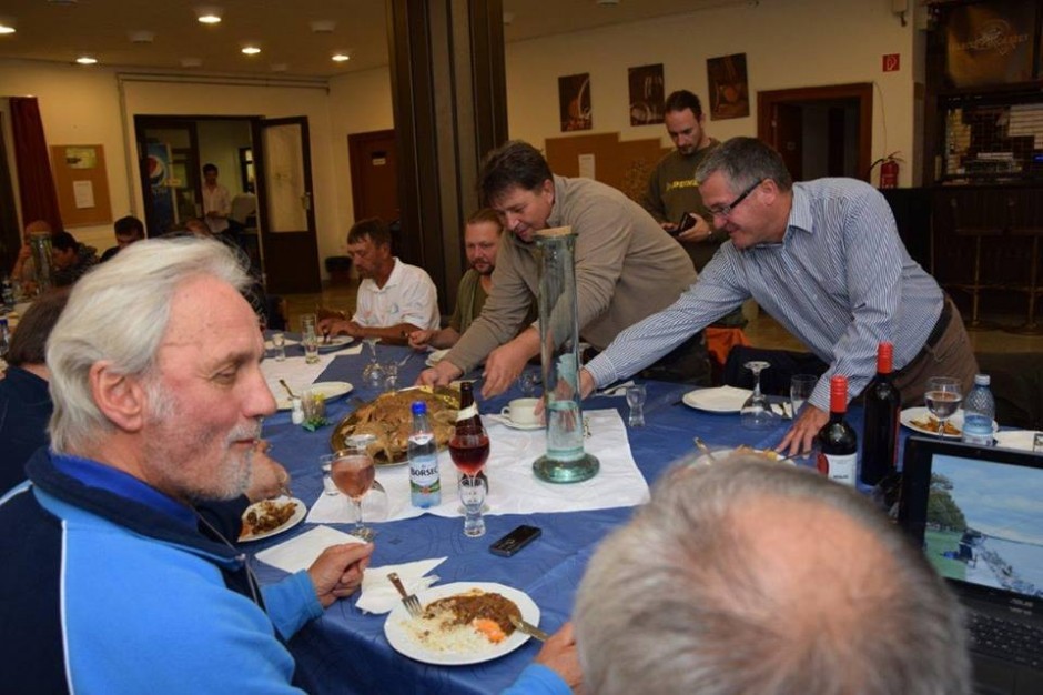 A komoly bejelentés után pedig megint csak a vidámságé lett a terep. Most a nyúl vitte a puskát, színészeink kérték fel a profi versenyzőket és a MOHOSZ vezetőségének jelenlévő tagjait, hogy adjanak számot versfelolvasási képességeikről. Szóval szavaltak ám szebbnél-szebb verseket. Ezt követően pedig még karaoke versenyre is sor került, amatőr versenyzőink énekhangját értékelhettük vacsora után. A vacsora is igencsak ízletesre és egyben különlegesre sikerült, tényleg elmondhattuk, hogy ettünk vadat s halat mi jó falat… Szóval a vacsora és az azt követő beszélgetések sokáig elhúzódtak.